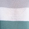 Este hermoso suéter cuadrado a rayas añade un toque de fantasía alternando colores y resaltando el efecto brillante de uno de ellos. Presenta un detalle de cadena en el escote barco, ribete acanalado en el bajo y mangas murciélago tres cuartos.